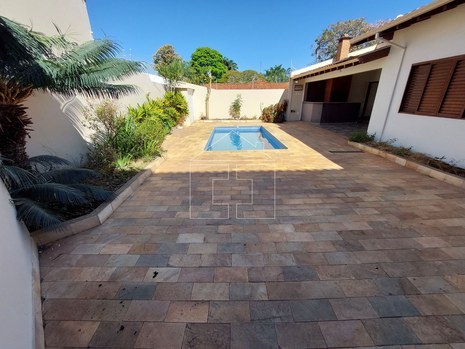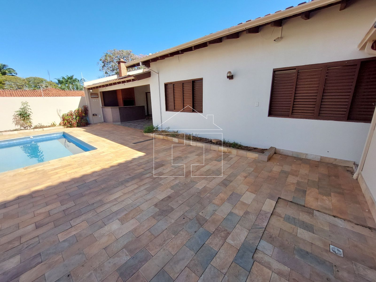 Área de lazer com churrasqueira + piscina + quarto + banheiro