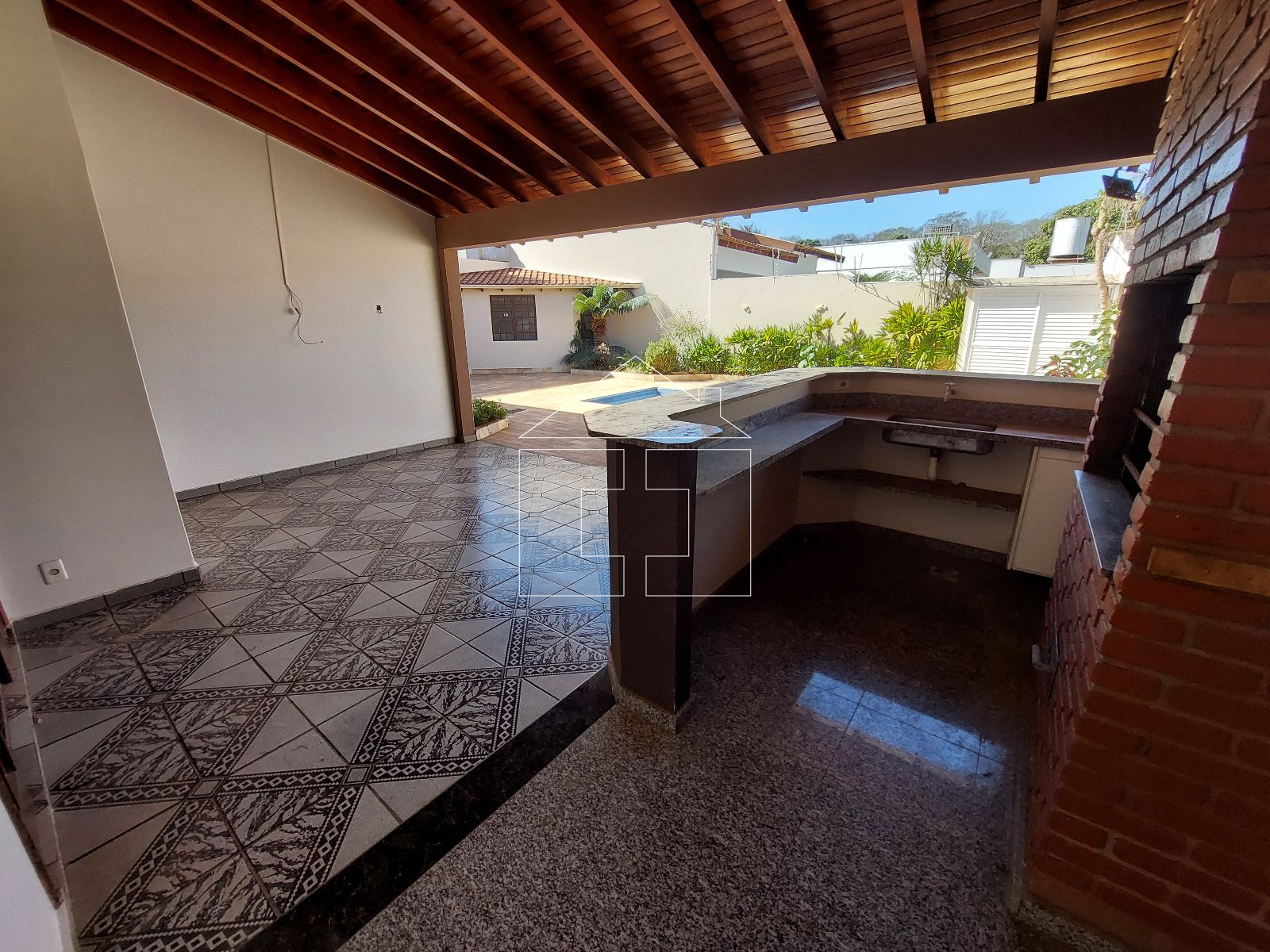 Área de lazer com churrasqueira + piscina + quarto + banheiro